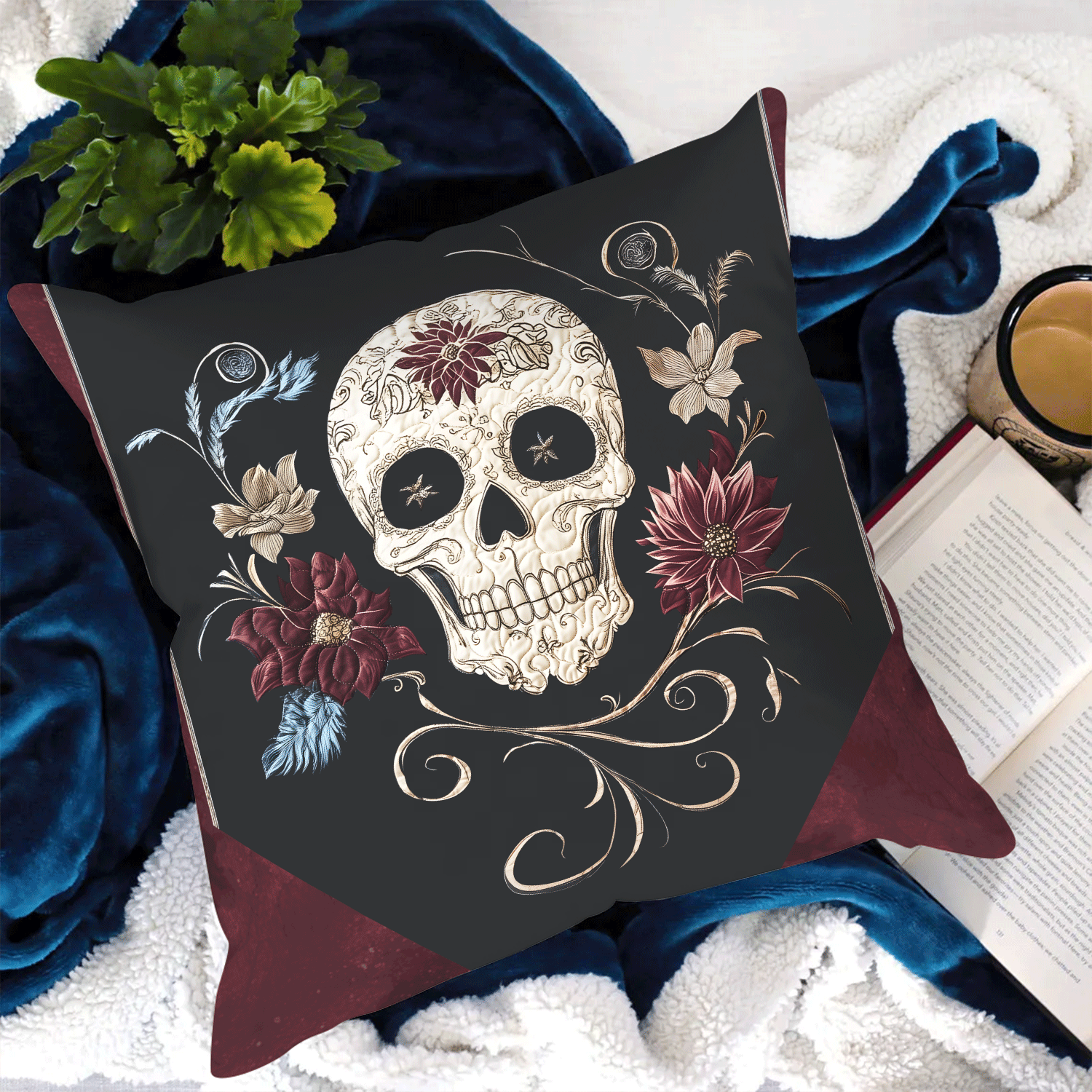 Midnight Skull Bloom Quilted Pillow Case NCU0TL2223