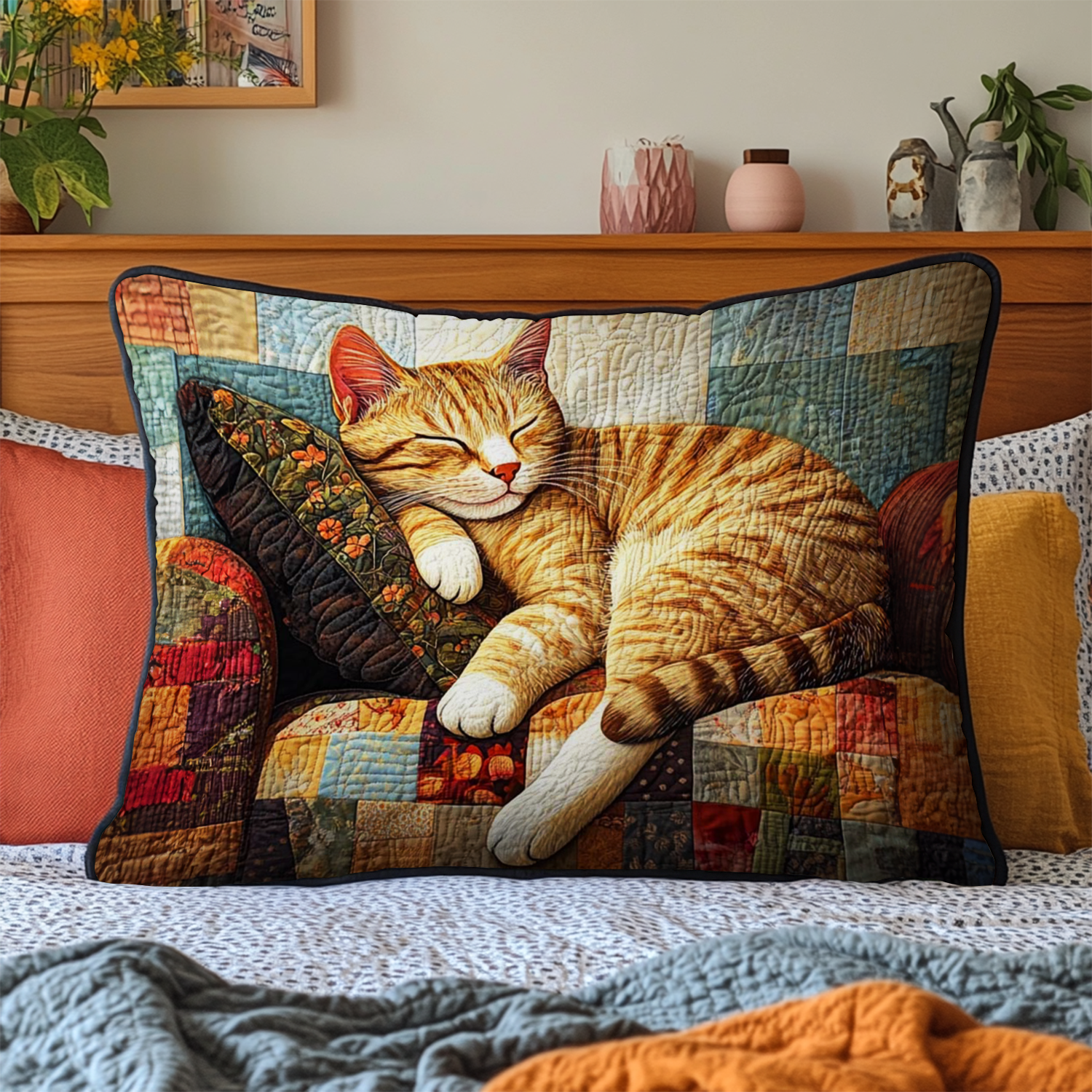 Cozy Cat Companions Quilted Bedding Pillow Case NCU0PT1533