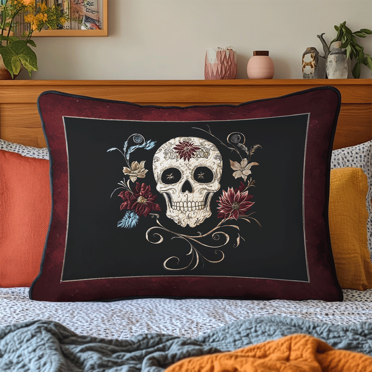 Midnight Skull Bloom Quilted Bedding Pillow Case NCU0TL2224
