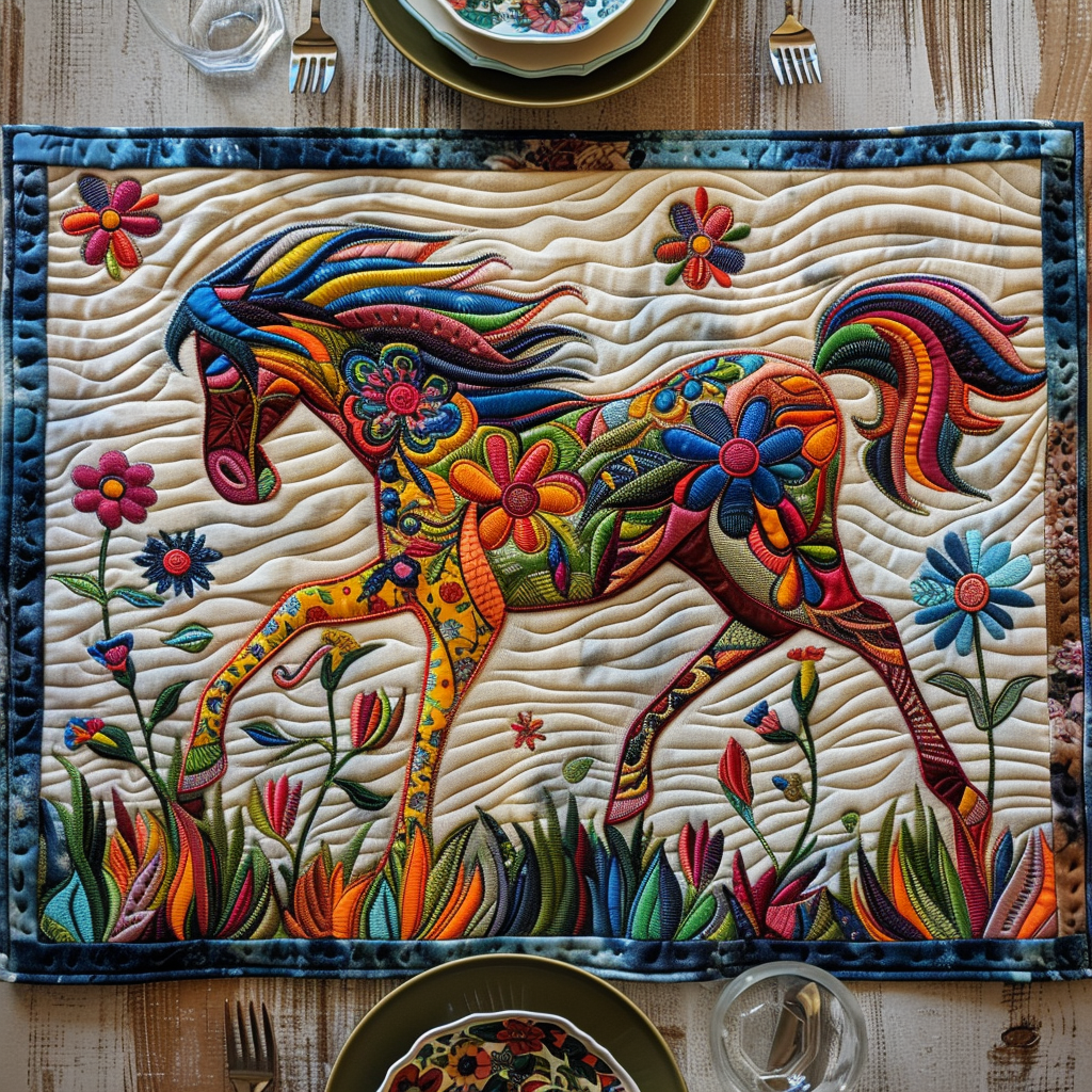 Colorful Galloping Horse Quilted Place Mat NCU0PD266