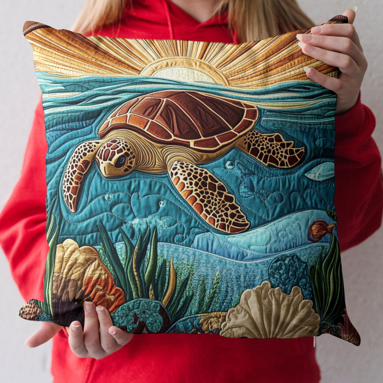 Blue Lagoon Turtle Quilted Pillow Case NCU0NT4068