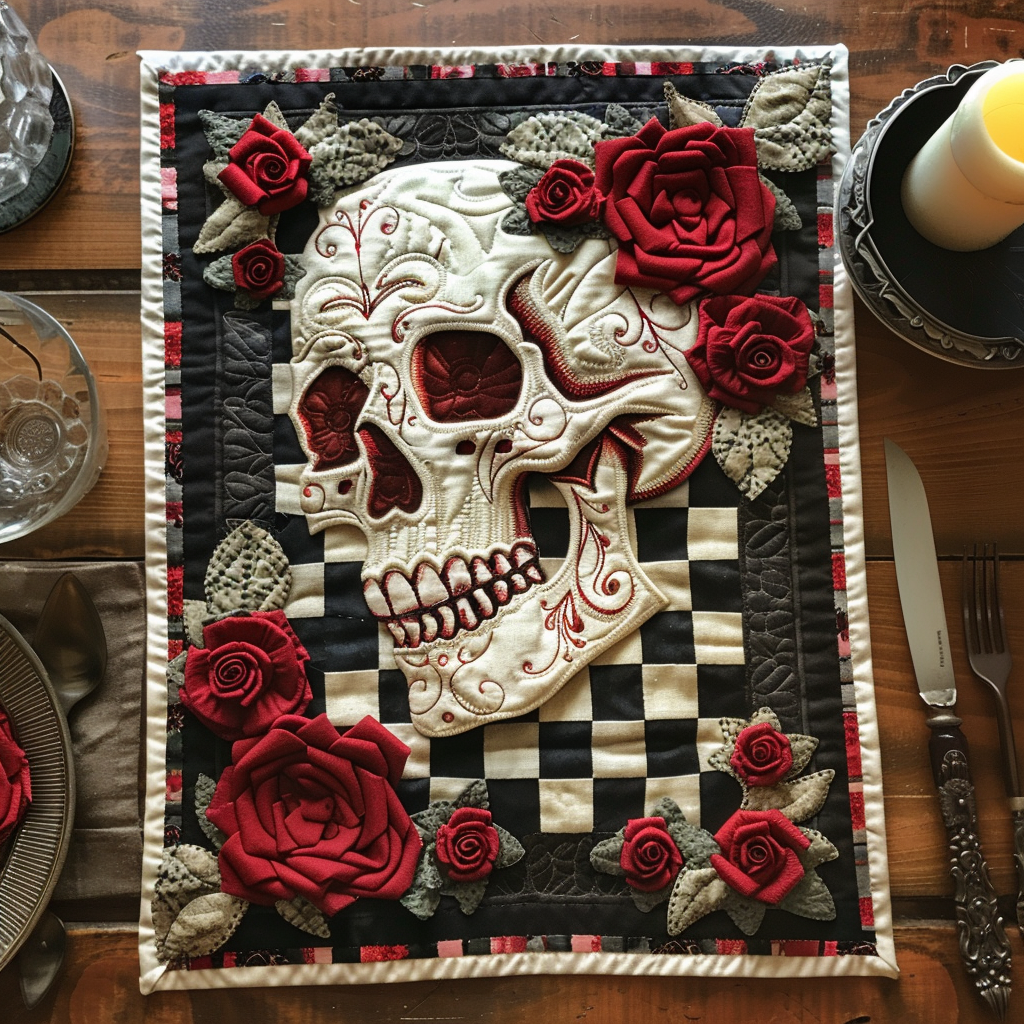 Skull & Roses Quilted Place Mat NCU0TH515