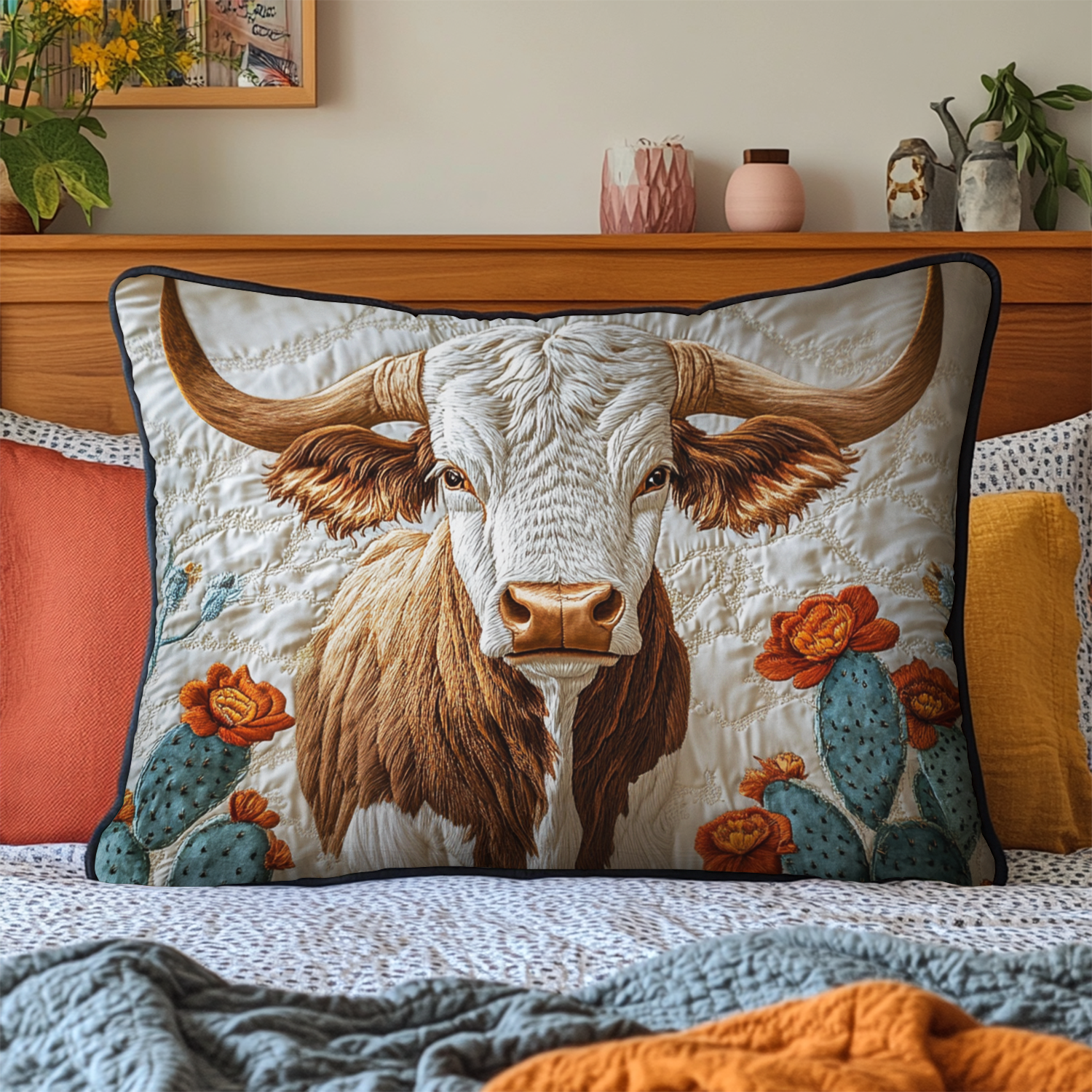 Texas Longhorn Quilted Bedding Pillow Case NCU0VH5859