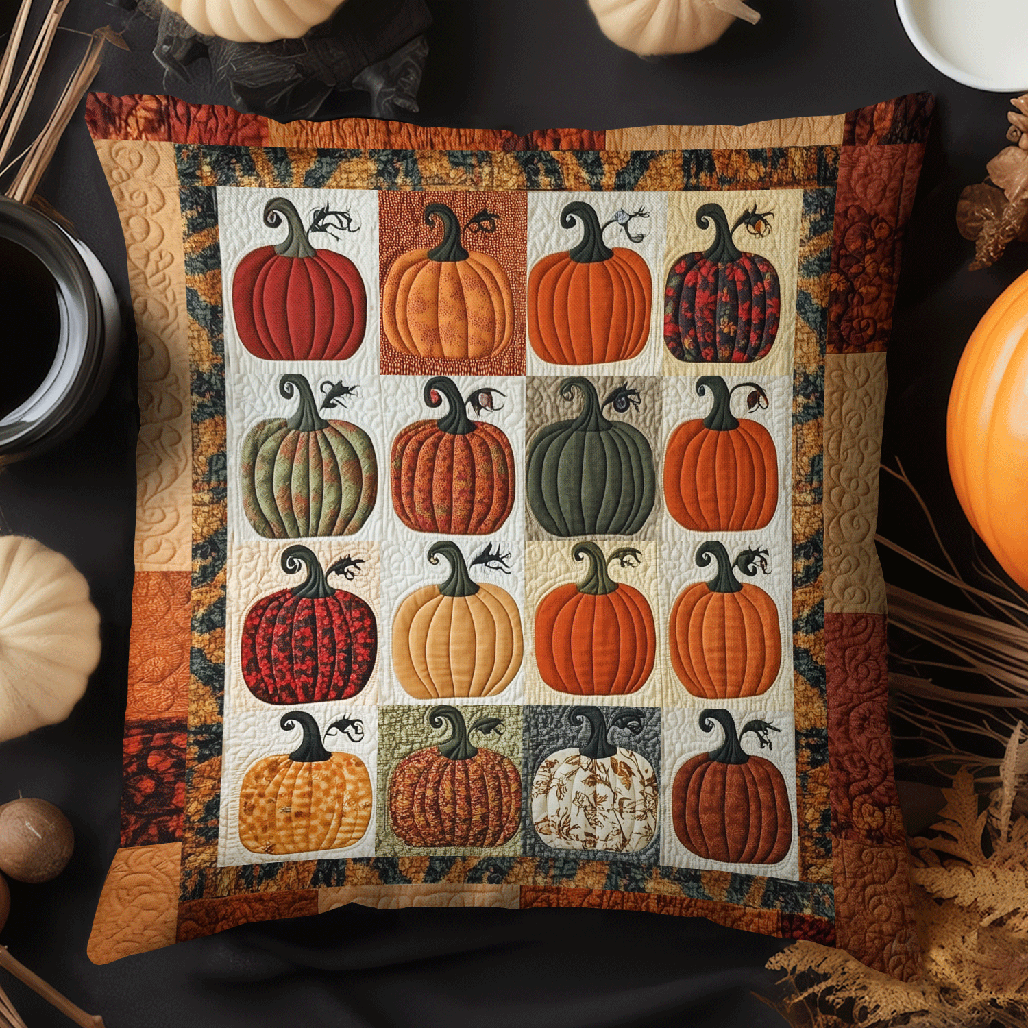 Autumn Pumpkins Quilted Pillow Case NCU0TH2156