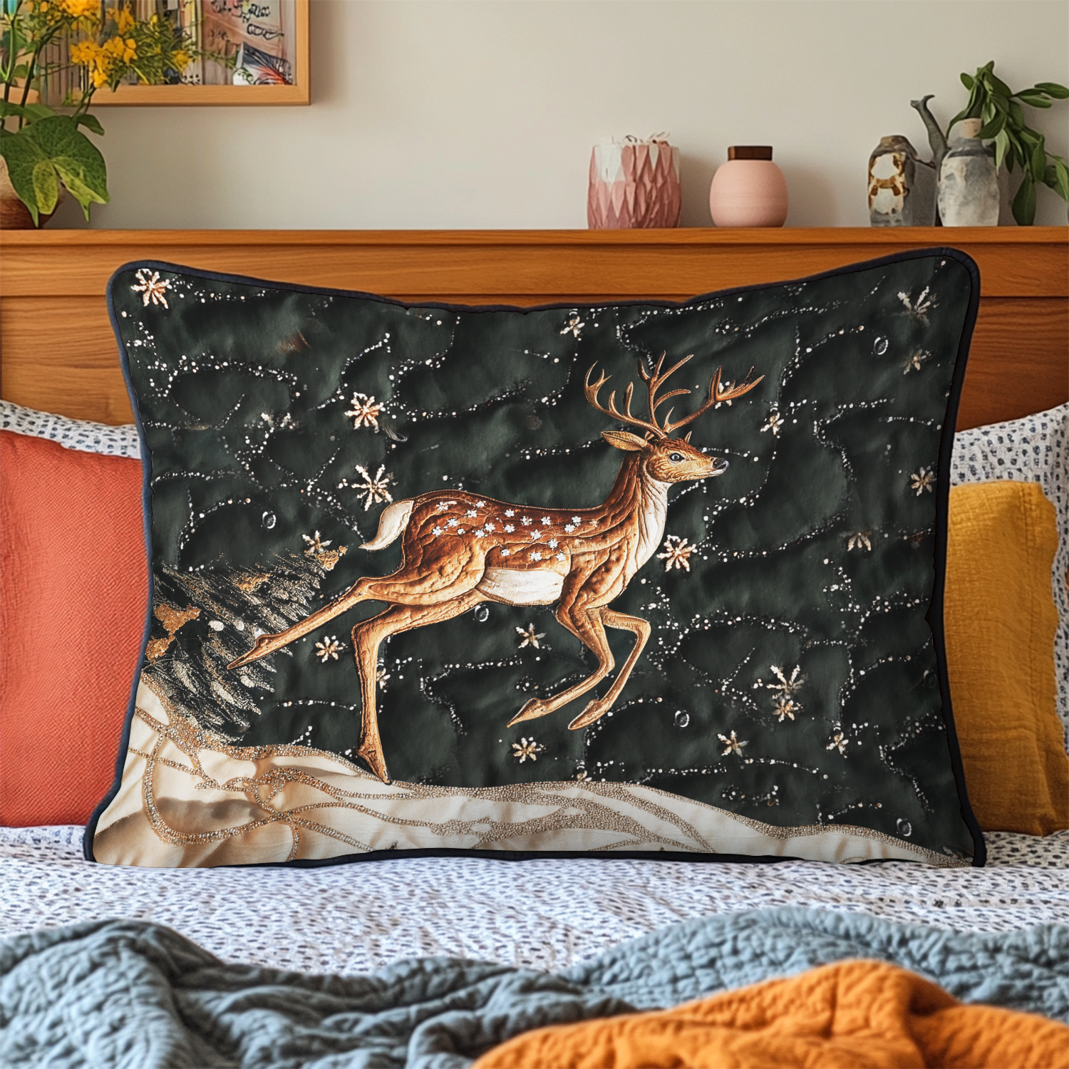 Reindeer Run Quilted Bedding Pillow Case NCU0VH1017
