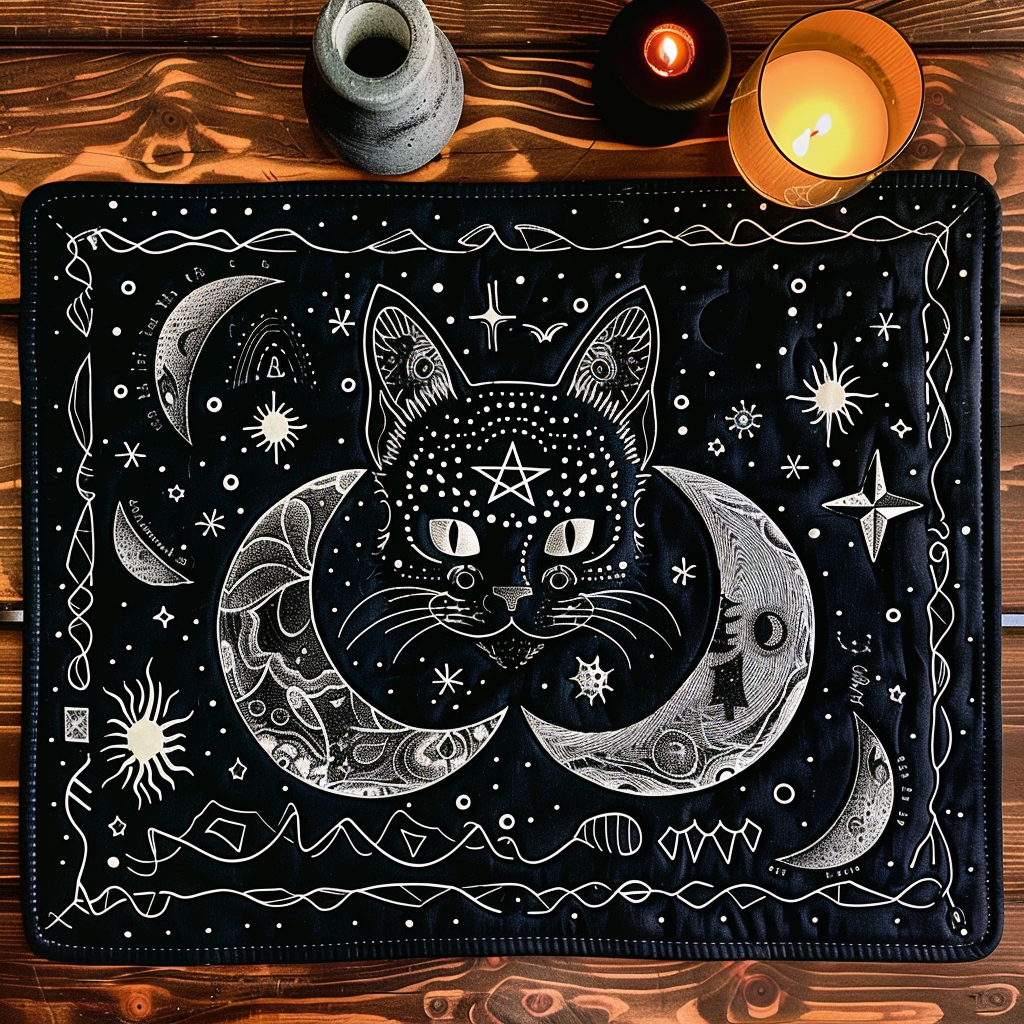 Starlit Sorcery Cat Quilted Place Mat NCU0TH452