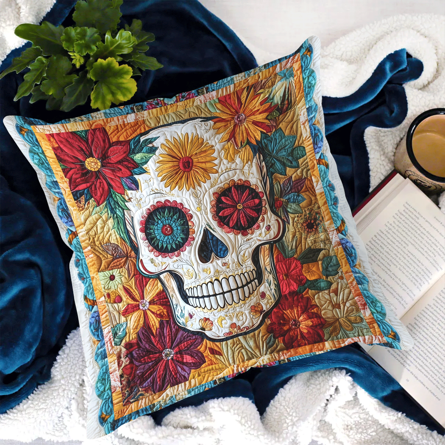 Festive Skull Quilted Pillow Case NCU0TL1866