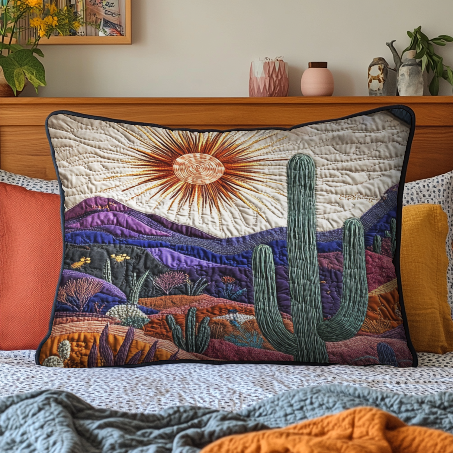 Cactus Sunset Quilted Bedding Pillow Case NCU0VH3439