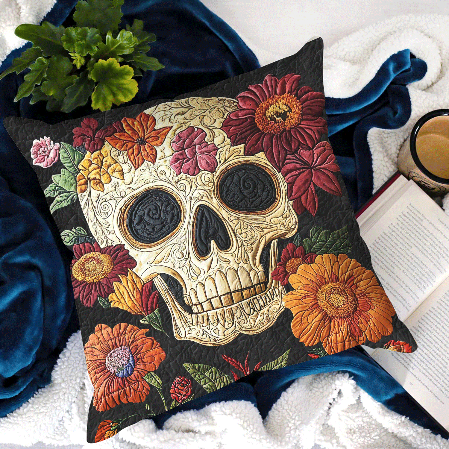 Floral Skull Charm Quilted Pillow Case NCU0TL1972