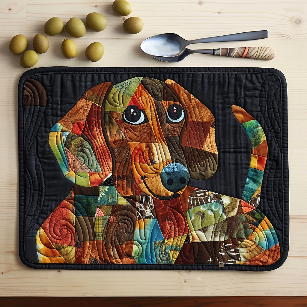 Cheerful Smile Autumn Dachshund Quilted Placemat NCU0TH004
