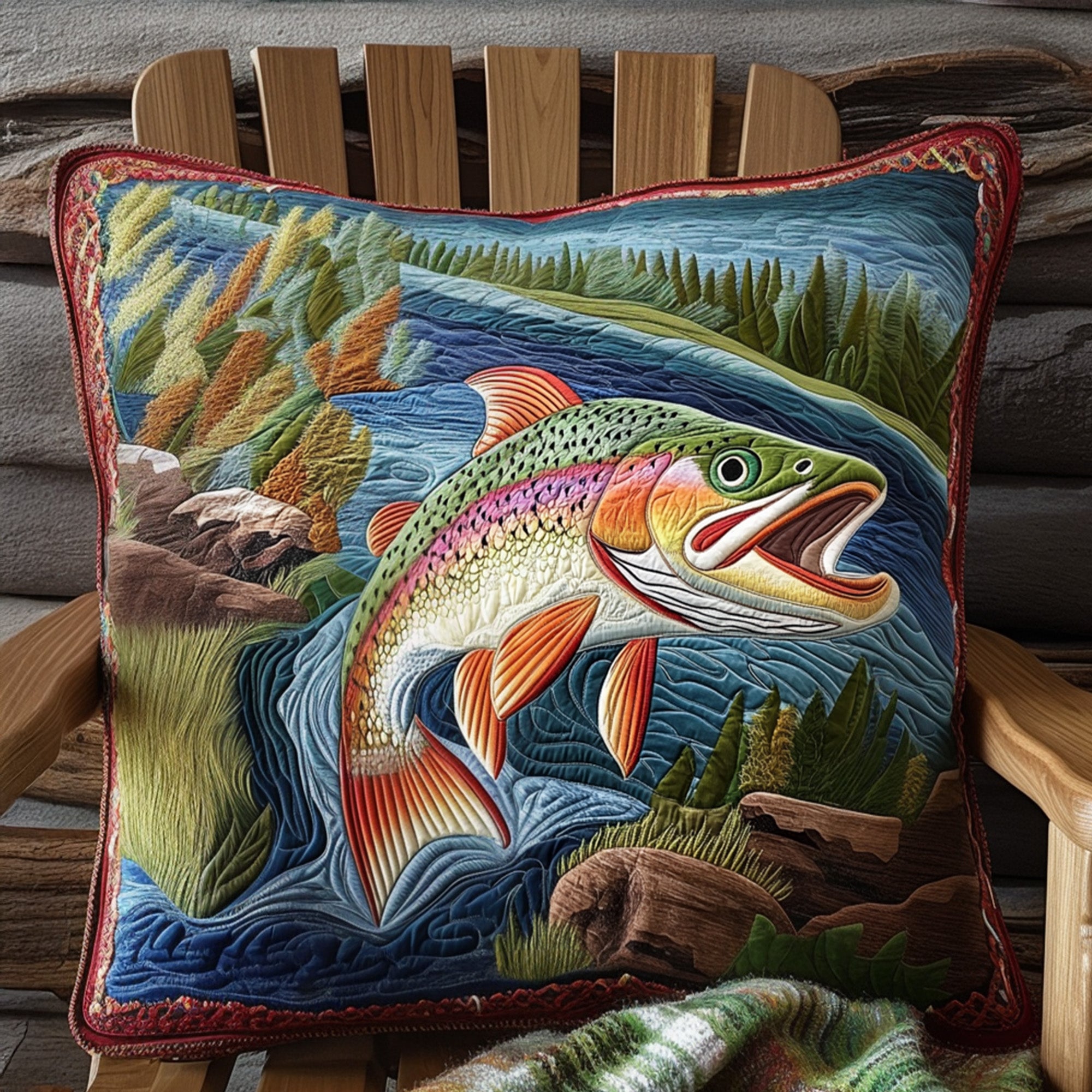 Hooked on Trout Quilted Pillow Case NCU0PT7000