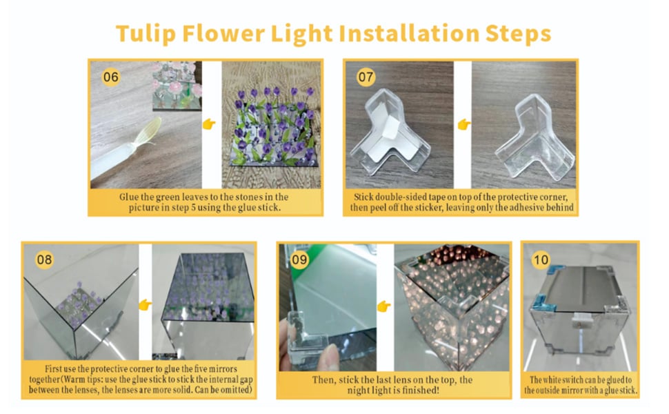 🎁💖Brighten up your loved one's room with a unique Chillever Tulip Mirror Night Light! Ideal for couples and children. this one-of-a-kind gift adds a touch of elegance and warmth to any space. A mirrored night light that you assemble with your own hands will be more meaningful and precious to the person receiving the gift.