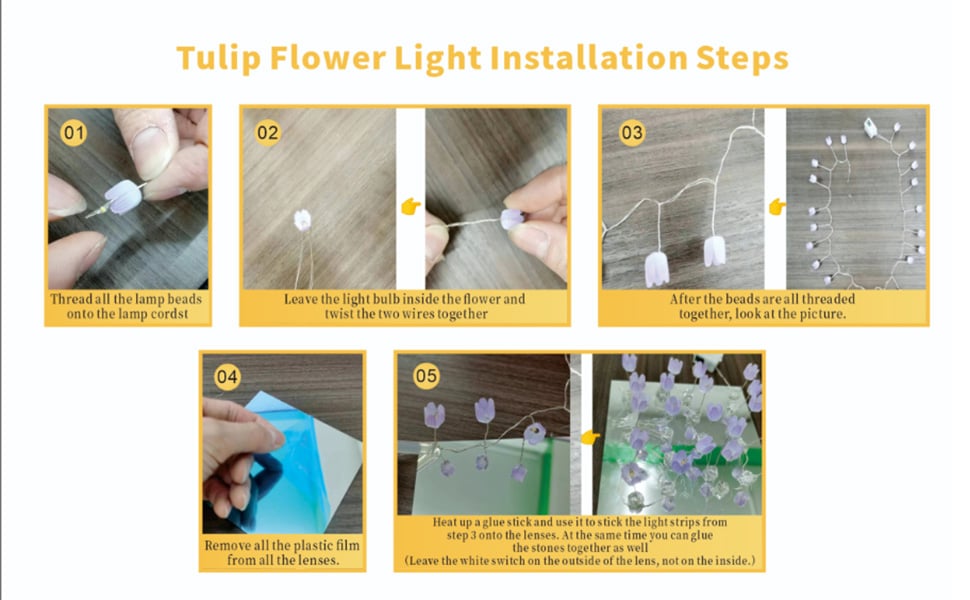 Our tulip lamp is made of energy-saving LED and high-quality flowers. which can be used for a long time. The product body is made of 21 flowers. high-quality plastic. and sturdy acrylic material. which is not easily broken.