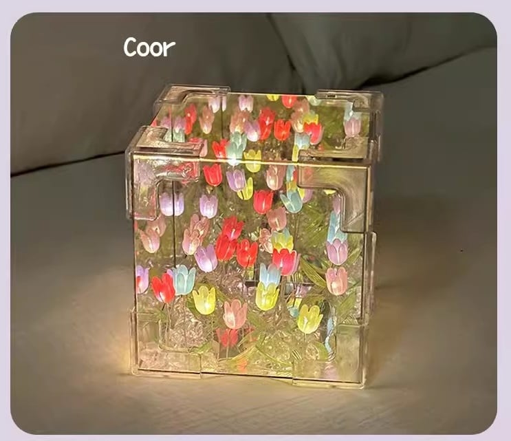 Our multifunctional tulip night light is a high-definition mirror when turned off. It opens to a sea of tulips.. the hidden flowers under the light are beautiful and charming. It creates a pretty and charming atmosphere.