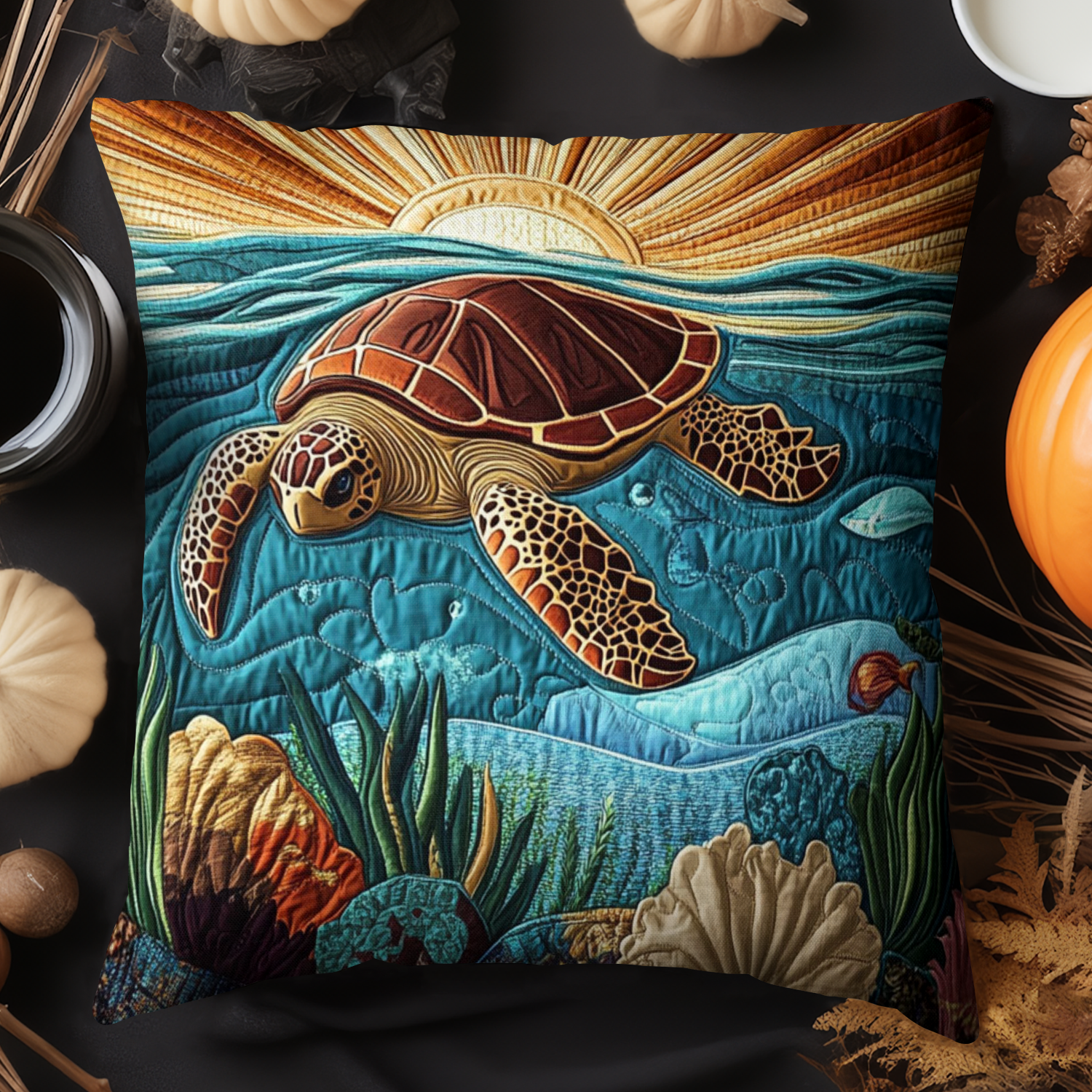 Blue Lagoon Turtle Quilted Pillow Case NCU0NT4068