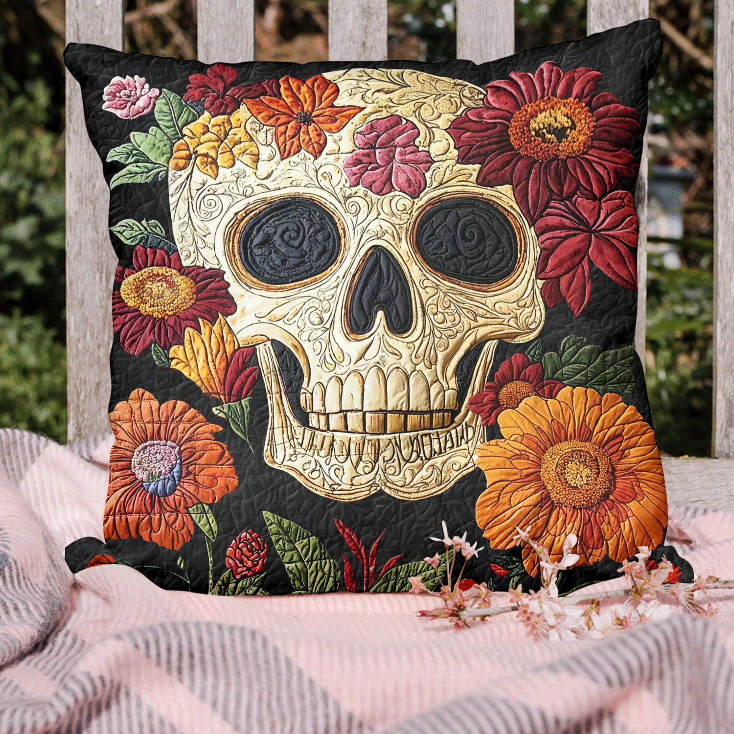 Floral Skull Charm Quilted Pillow Case NCU0TL1972