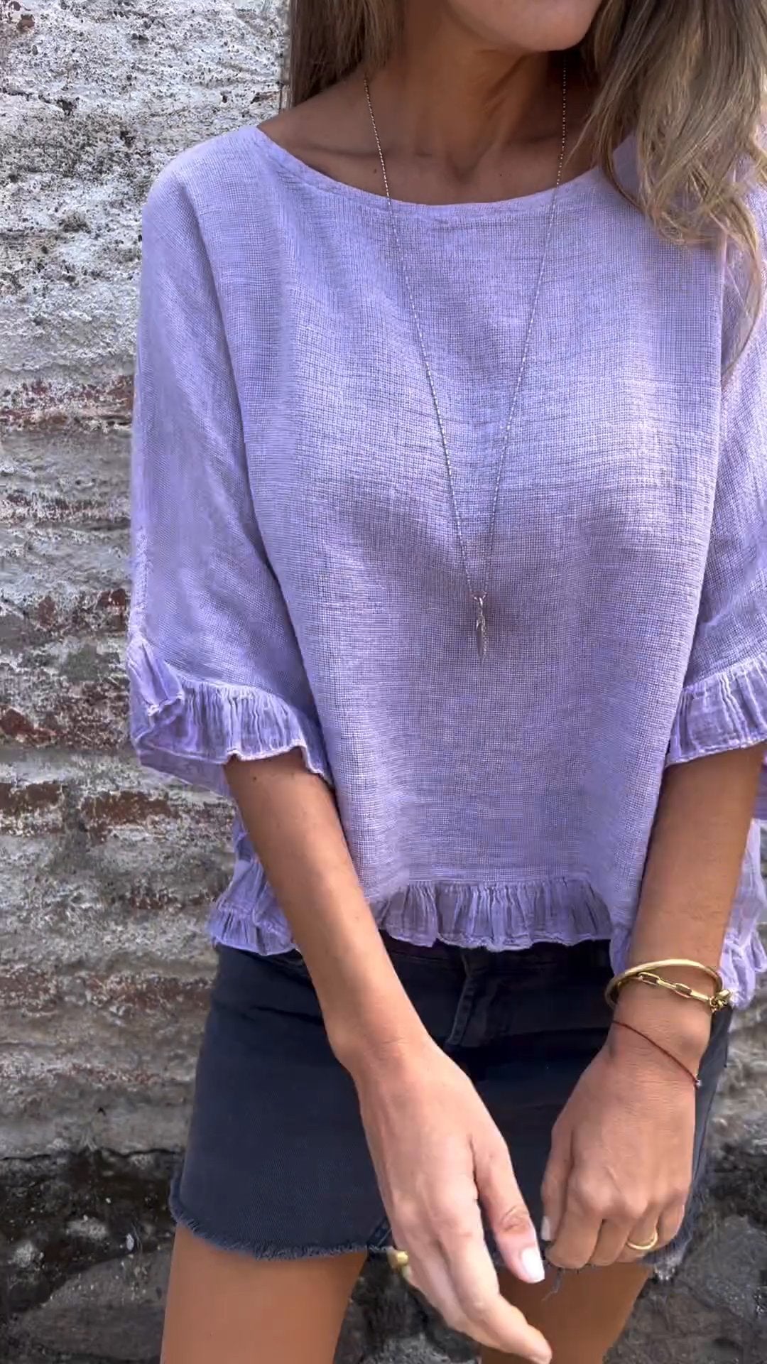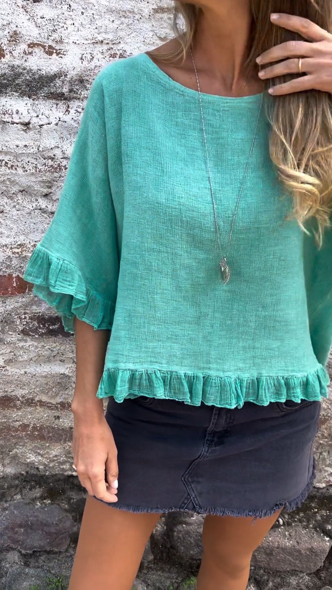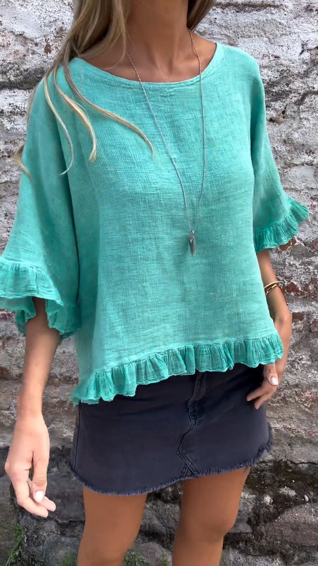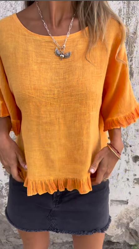 Fungus Hem Design Cotton and Linen Top