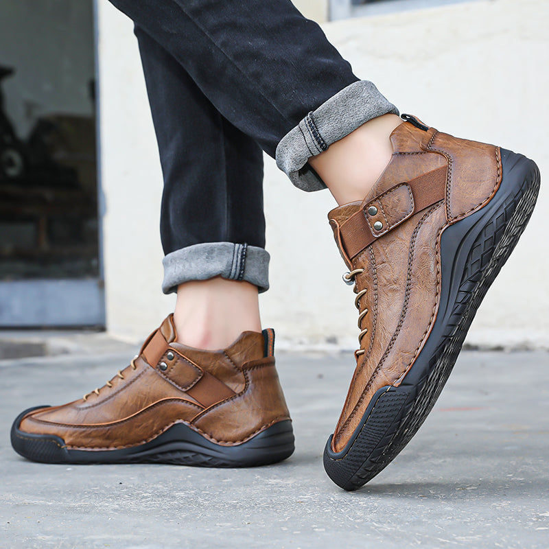 - HIGH QUALITY : The upper is made of premium leather with clear texture and used soft and double handmade sewing so that the hand stitching zipper shoes can be durable and firm.