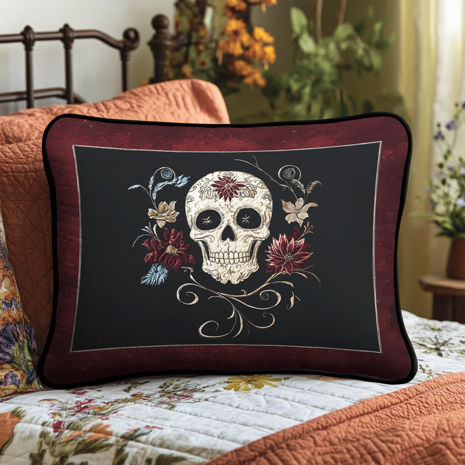 Midnight Skull Bloom Quilted Bedding Pillow Case NCU0TL2224