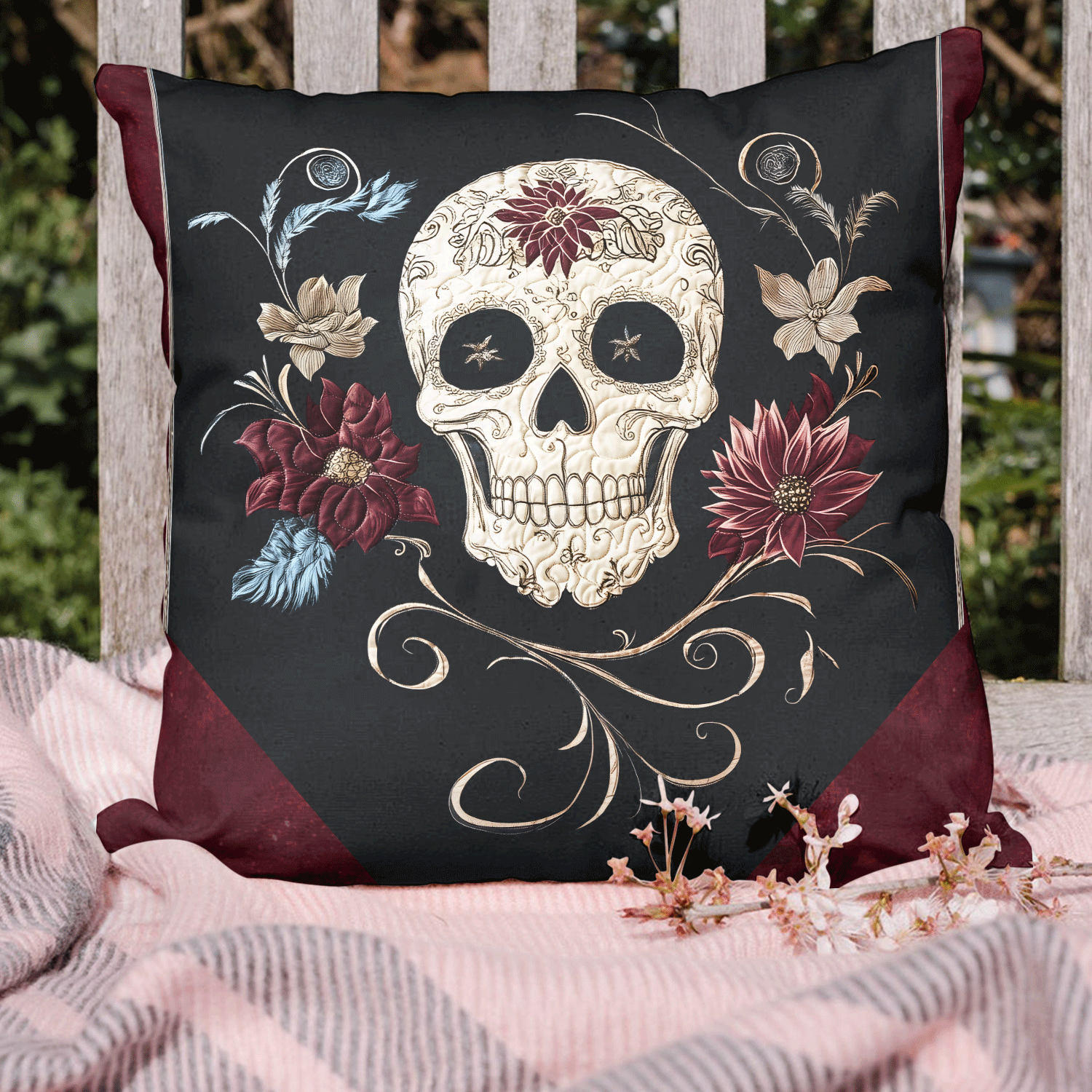 Midnight Skull Bloom Quilted Pillow Case NCU0TL2223