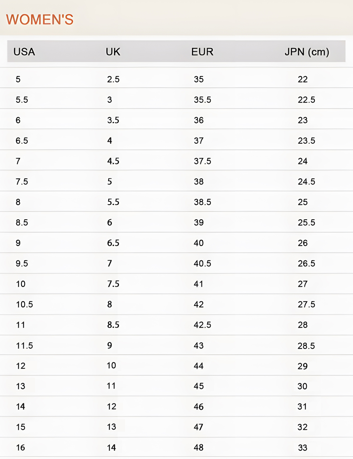 Size Note: If your foot is wide, we suggest you choose 1/2 or one whole size larger.